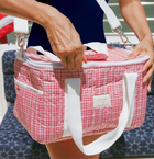 introducing minnow's newest go-to summer accessory: the durable insulated cooler. designed in the season's favorite print, it has two carrying handles and a crossbody strap, with two zipper pulls for easy access. perfect for the beach, boat or park, with an insulated interior for easy clean-up.